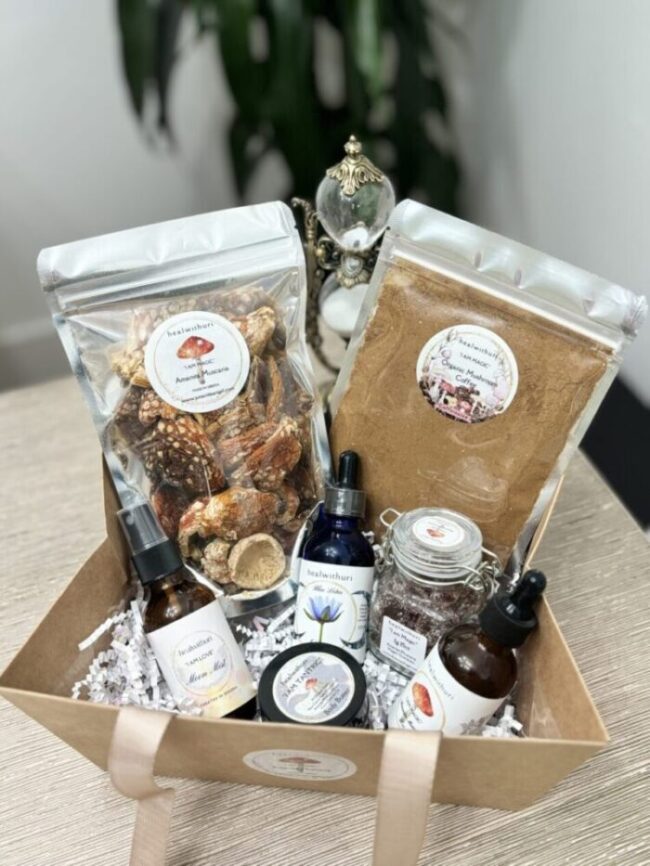 Try everything from Ancient mushroom and lotus collection, 1 morning tincture, 1 evening tincture, 1 blue lotus tincture, 1 moon mist, 1 love potion, 1 caffeinated coffee, 1 body butter, 1 magic gummy pack, 1 tea bag, 1 magic cacao. If you like different option, please indicate which you like to swap.