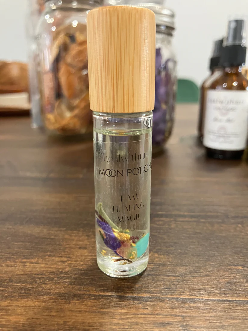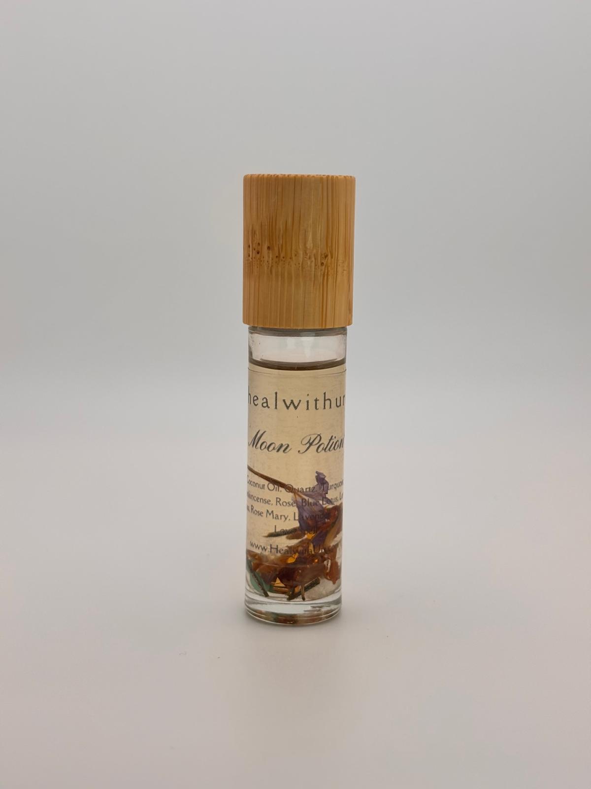 Ceremonial frequency raising oil for whenever you like to feel re-aligined and to raise your frequency. Excellent protection oil after a ceremony, a healing session and after a long day of work. Blend of Coconut oil, Frankincense, Lemongrass oil, Crystal, moon charged rose, herbs, 24k gold…